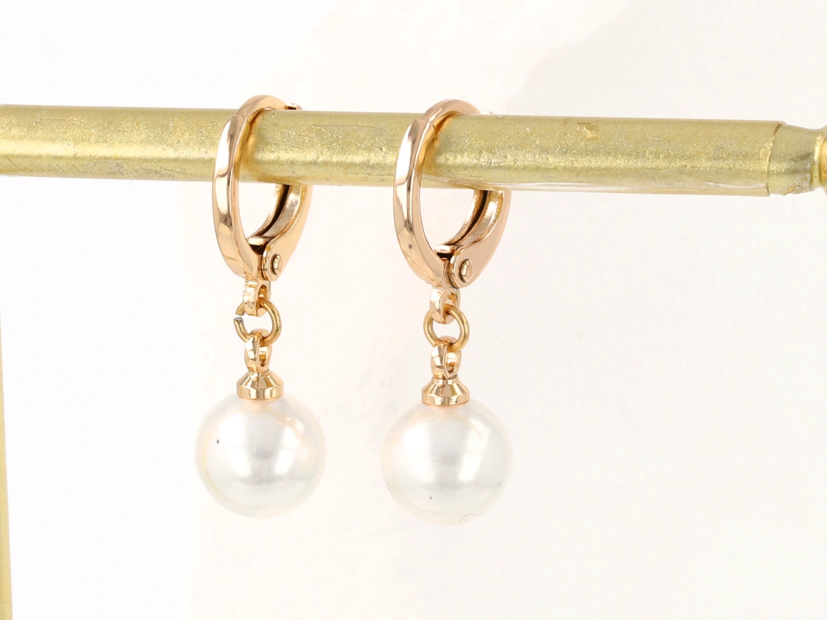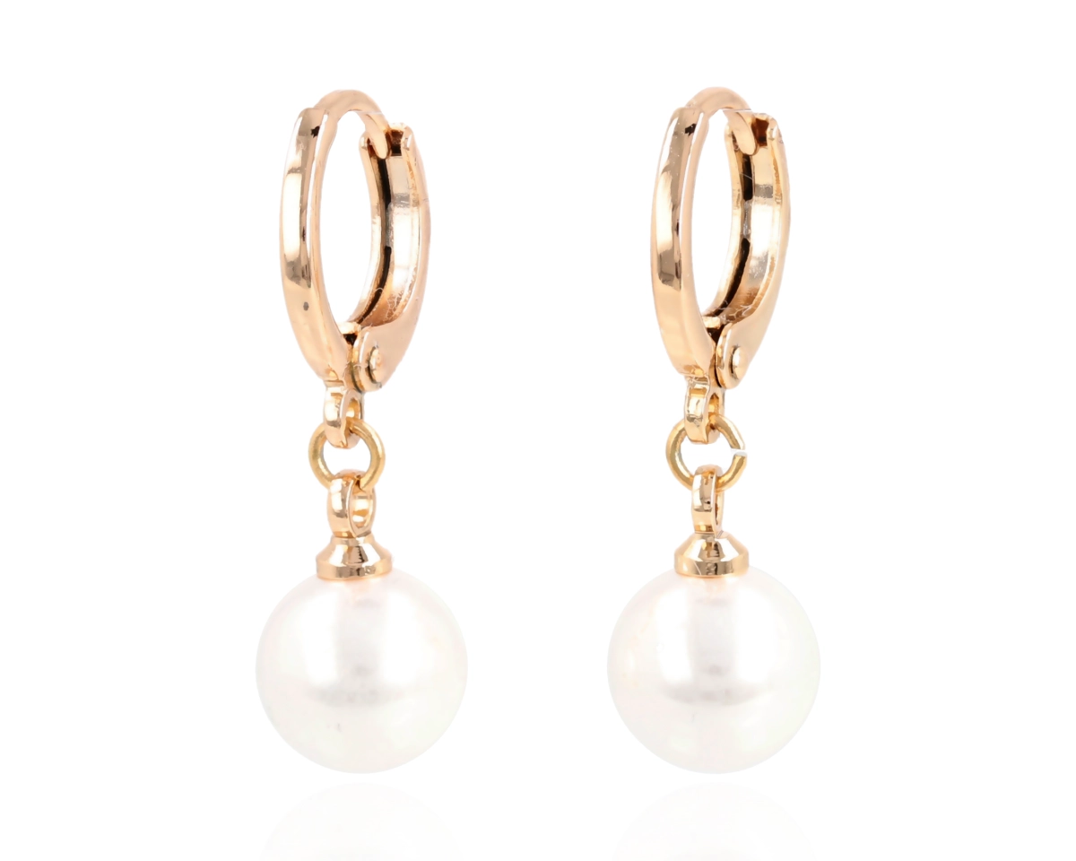 Kolczyki na kółku z perłą wykonane z miedzi, pozłacane 18k złotem. Pokryte dodatkowo lakierem jubilerskim, który przedłuża żywotność koloru i nadaje wspaniały blask.