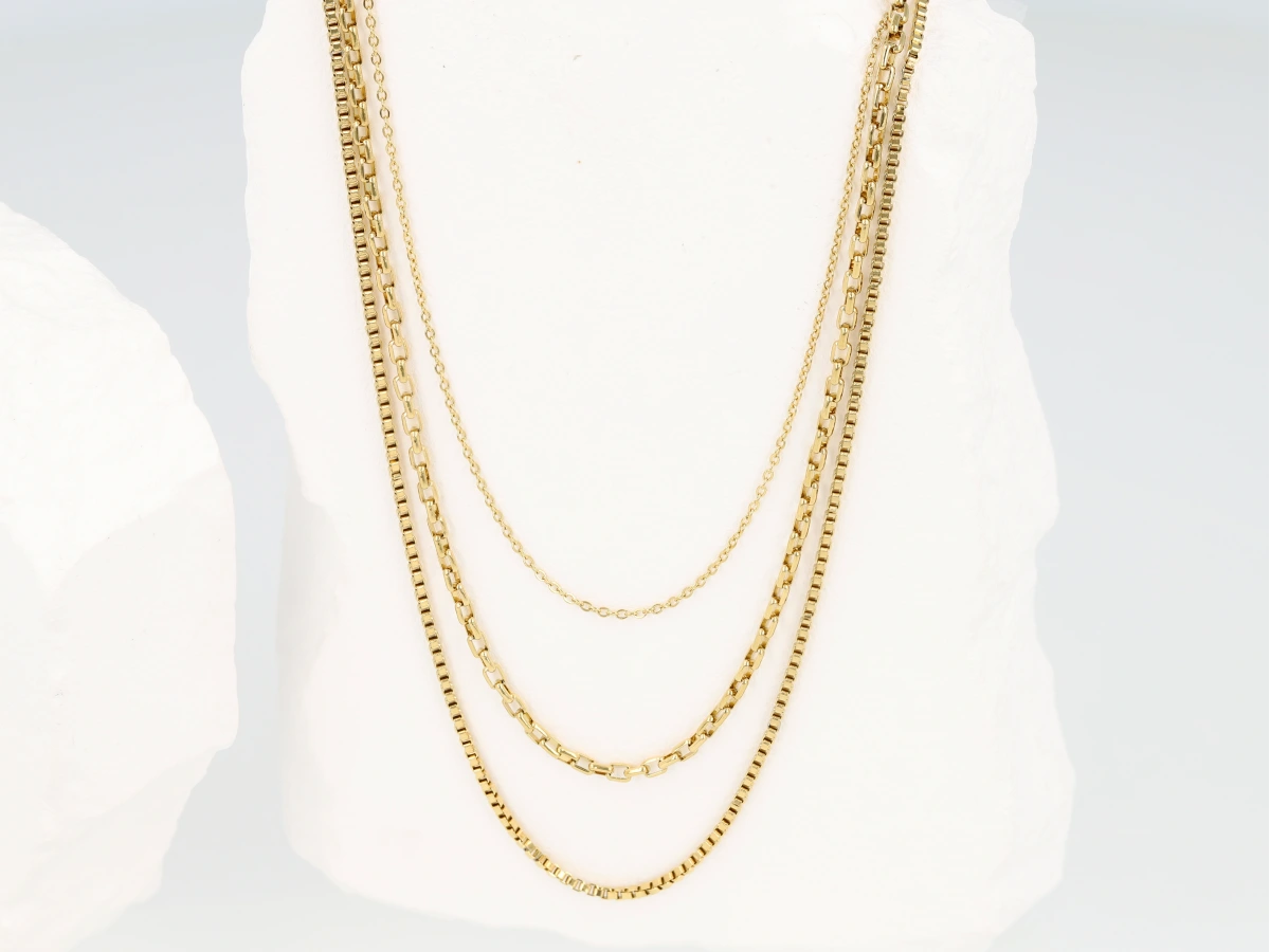 Naszyjnik potrójny z trzech łańcuszków, wykonany z wysokiej jakości stali nierdzewnej 316 L.