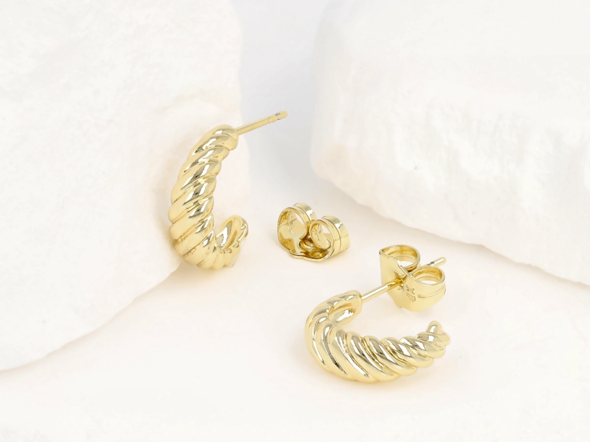 Kolczyki wykonane z miedzi, pozłacane 14k złotem. Pokryte dodatkowo lakierem jubilerskim, który przedłuża żywotność koloru i nadaje wspaniały blask. Produkt antyalergiczny, nie zawierający niklu. Wysoka jakość materiałów i precyzja wykonania to cechy rozpoznawcze producenta.